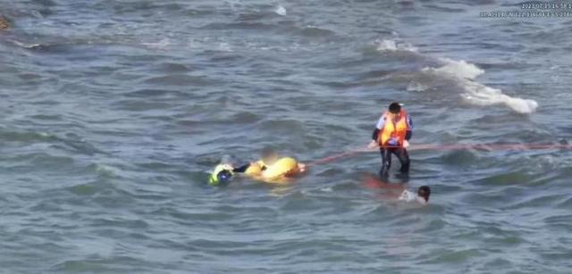 山东威海三名游客被困海中 无人机+水上救生机器人协助救人
