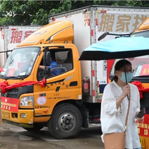 整装待发的搬家车。