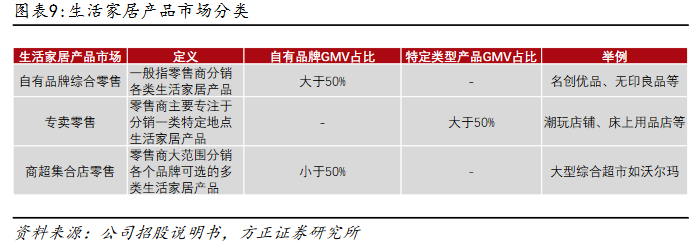 根据弗若斯特沙利文的分类,生活家居产品市场可按零售商类型细分,其中,自有品牌综合零售,一般指零售商分销各类生活家居产品,其总GMV有超过50%来源于自有品牌生活家居产品。