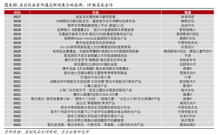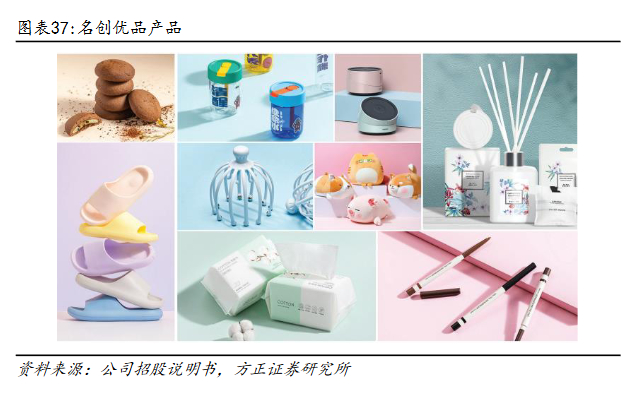 以渠道品牌赋能较难做出产品力差距的产品。前文品类部分提到,名创优品所选择的品类内部大部分很难通过技术做出源自产品力的差异,名创优品一方面用IP内容为这些SKU赋能,一方面用渠道品牌的形式,为整体的产品矩阵赋能,“名创优品“已经成为了一个广泛接受的品牌。