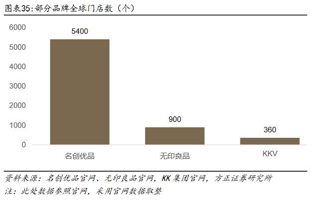 名创优品规模化的门店带来采购低成本优势。目前名创优品成功进入全球超105个国家和地区,在全球范围内拥有超5400家门店,而作为和名创优品比较类似的渠道KKV及无印良品,门店数量远不及名创优品。在规模化的终端分销渠道支持下,名创优品会具有更低采购成本的优势。