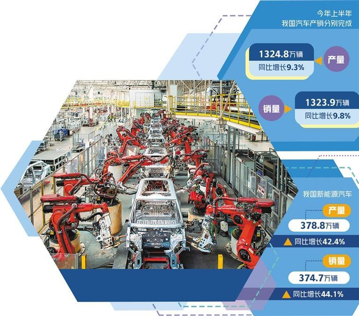 中国汽车工业协会数据显示,今年上半年,我国汽车产销分别完成1324.8万辆和1323.9万辆,同比分别增长9.3%和9.8%。其中,新能源汽车、汽车出口和自主品牌表现突出。