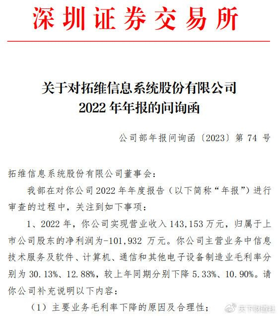 而就在今年5月,拓维信息还因为去年巨亏10亿元,被深交所下发了问询函。