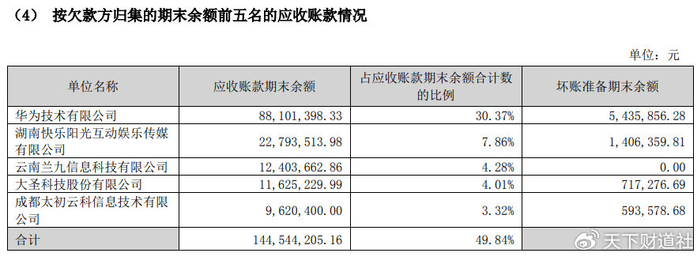但是,来自华为的应收账款却从5913万元大增至8810万元,增幅超过30%;对华为应收账款计提的坏账准备则激增了116%。
