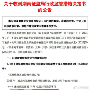 7月13日,湖南证监局公布了《关于对拓维信息系统股份有限公司采取责令改正措施的决定》。