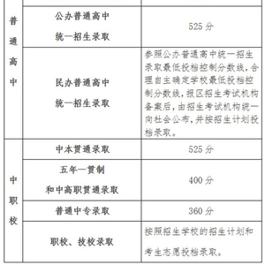 统一招生录取包括“1至15志愿”和征求志愿录取。“1至15志愿”按照“分数优先,遵循志愿,一轮投档”的平行志愿原则,依据学生学业考试总成绩和志愿,按招生计划数由高分到低分录取。