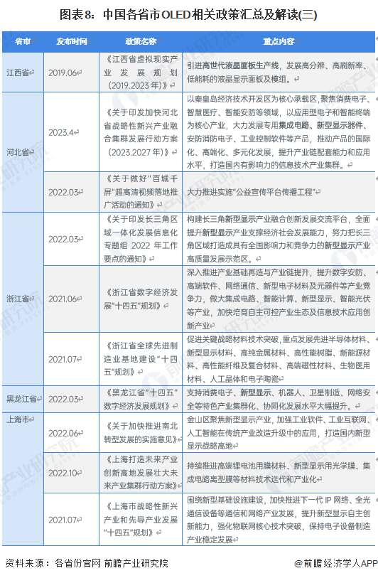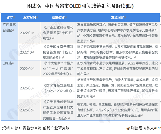 重磅!2023年中国及31省市OLED行业政策汇总及解读(全)