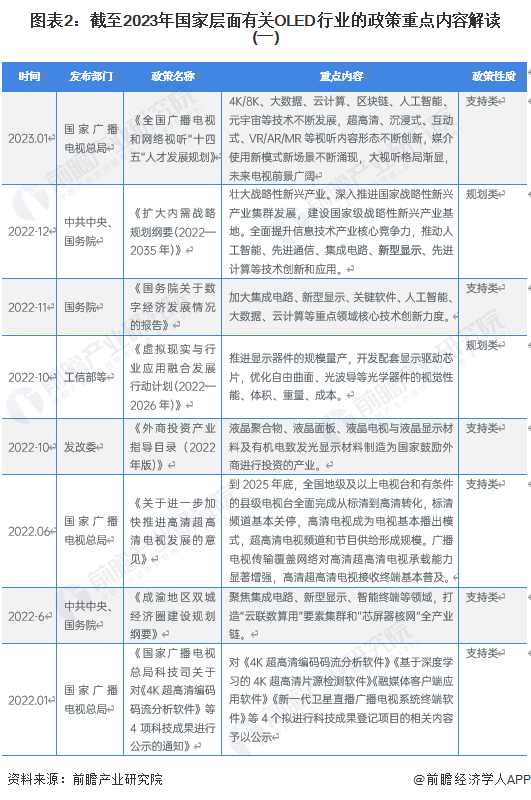 自2017年以来,国务院、国家广播电视总局等多部门都陆续印发了支持、规范OLED行业的发展政策,内容涉及OLED发展规划及支持政策等。截至2023年5月,我国OLED行业重点政策如下: