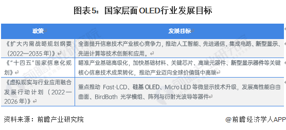 近年来,工信部等部门支持创新突破,促进新型显示产业高质量发展,将深入落实产业规划,推动资源要素集聚和整合,引导重点区域合理布局,提升产业链供应链韧性,推动我国新型显示产业向价值链中高端跃进。坚持创新驱动发展,全力攻克新型显示领域关键核心技术,加快培育新技术、新产品、新业态、新模式。我国国家层面OLED行业发展相关规划及主要内容如下: