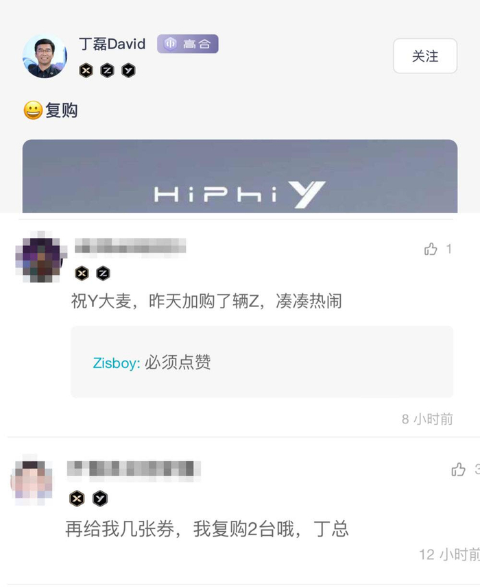 对于塔尖1%的人,买车像给孩子买玩具一样随意。不用在意哪里生产,不用在意什么材料,喜欢就刷卡。这也就是为什么,高合的车主中,拥有HiPhi X并增购HiPhi Z的双旗舰车主占比高达12%。一些狂热的车主,甚至可以像集卡片一样,集齐三个车主徽标。