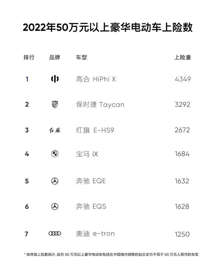 从欧洲传统豪华品牌手里抢客户,高合在国内已是屡试不爽。回顾2022年,高合HiPhi X以4349辆的数据,位列50万以上豪华电动车销量榜榜首。凭借着“飞飞门”的尊贵仪式感以及武装到牙齿的配置堆量,让保时捷、奔驰、奥迪的电动车型成了高合的在中国的“手下败将”。