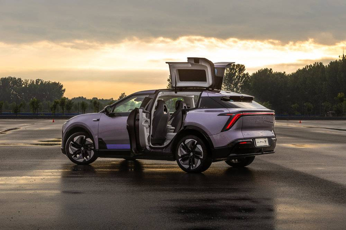 此外,行业热捧的一体化压铸技术,被高合拿来生产展翼门。在该工艺的加持下,后舱地板被集成为一体超大铝铸件,而展翼门也相比上一代的X,集成度更高,重量更轻。