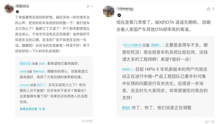 本质上,采用成熟供应商的解决方案,是汽车行业的一贯做法。但回归智能汽车的根本,如果仅仅是各家供应商的拼凑,看似大厂云集,实则却是拼拼凑凑。对消费者最直观的影响就是,空有硬件基础,没有软件更新。在高合App上,就有车主对高合的软件能力提出质疑。