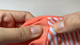 注意检查缝制质量,选择缝迹(带线的边宽)较宽的泳衣,一般缝迹在3mm左右为宜。检查面料表面是否有瑕疵、色差、污渍,缝纫轨迹是否平直、圆润。对有搭扣、吊带、系绳的泳装,检查其牢固程度。不宜选择拼接较多的款式。