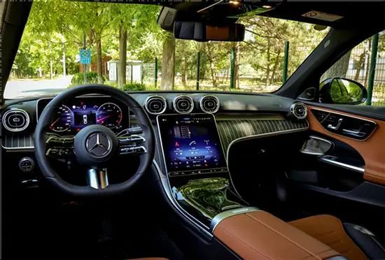 内饰方面,新车并没有采用与全新奔驰GLC相同的内饰设计,依旧采用一体式双联屏布局。不过,新车换装了奔驰家族最新款式的Nappa真皮方向盘。内饰颜色新增加了驼绒米色/黑色和可可棕色/黑色两款内饰配色。