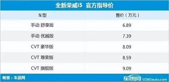 7月12日,车质网从相关渠道获悉,全新荣威i5正式上市,本次上市共推出5款车型,售价区间为6.89—9.09万元。在购车政策方面,新车推出了5重好礼,包括定金膨胀礼:115元下定抵5000元、豪享金融礼:日供低至25元、无忧质保礼:4年/15万公里超长整车质保、终身流量礼:终身免费 基础流量。
