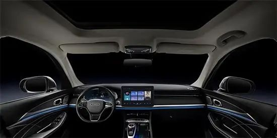 内饰方面,新车沿用了现款车型的布局造型,其采用10.25英寸全液晶仪表+12.3英寸中控屏的双屏组合,其中中控屏搭载吉利银河OS生态系统,采用E02新一代高性能数字座舱平台,带来更具智能化的用车体验。