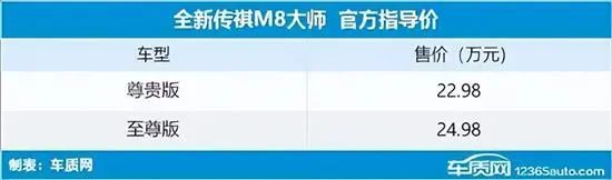 7月15日,编辑从广汽传祺官方获悉,全新传祺M8大师正式上市,新车推出2款车型,售价为22.98-24.98万元。新车采用全新的外观设计,视觉效果更为夸张激进,同时还针对配置方面进行全方位调整,性价比出色。
