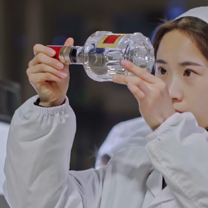 贴上酒标,这时的五粮液看起来就和餐桌上成品没什么区别了。但检验程序却还在继续,工作人员会对每瓶五粮液进行“横、倒、竖”摇晃检测——先将酒瓶横过来,再倒置,最后竖立起来。经过这套流程,工作人员便能在摇晃过程中无死角地观察酒瓶内是否存在异杂物。所有的五粮液,出厂前都会被“横、倒、竖”一次。