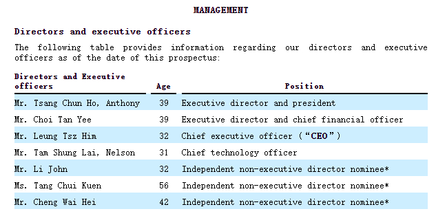 招股书显示,Alpha Technology的管理层如下: