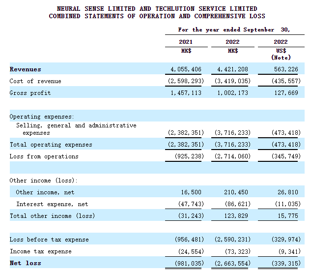 招股书显示,在过去的2021财年、2022财年(财政年度截止日期为9月30日)和2023财年前六个月(截止2023年3月31日),Alpha Technology的收入分别为405.54万、442.12万和554.26万港元,相应的净利润分别为98.10万、266.36万和239.76万港元。