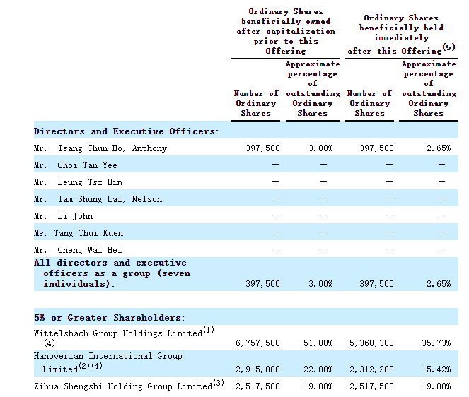 Alpha Technology是次IPO的的中介团队主要有:质数资本为其独家承销商;Audit Alliance LLP、Marcum Asia CPAs LLP为其审计师;TC & Co、翰博文分别为其公司香港律师、公司美国律师;UW’s HK counsel、Sichenzia Ross Ference LLP分别为其承销商香港律师、承销商美国律师。