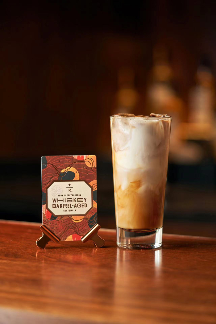 桶酿冰拿铁:以威士忌桶酿咖啡豆制作的意式浓缩咖啡为基底,牛奶的融合增添醇厚口感与浓郁麦芽般的香气,口感更为柔滑细腻。