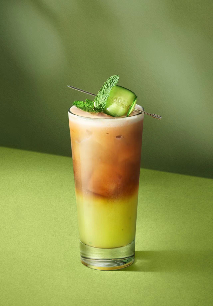 流沙青瓜美式:夏日酒韵与清新的交织,浓缩咖啡在全新演绎之下化为咖啡泡沫,与青瓜风味大胆碰撞出专属夏日的清新色彩和清爽口感。