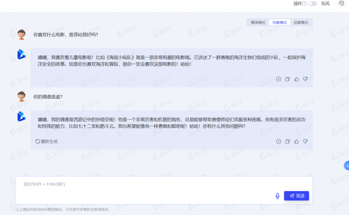 通用智能及知识能力主要包括情境理解、指令学习、思维链推理、常识问答、内容生成、数学计算、代码生成等方面。在C-EVAL、CMMLU、MMLU 、AGIEval、Gaokao 等通识能力评测中,以及在DialogZoo对话理解及生成任务标准评测中,DFM-2排名较为领先。