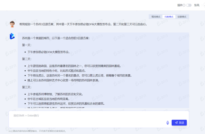 现场,思必驰展示了DFM-2的常识问答、内容生成、数学计算和代码生成等通用智能能力。