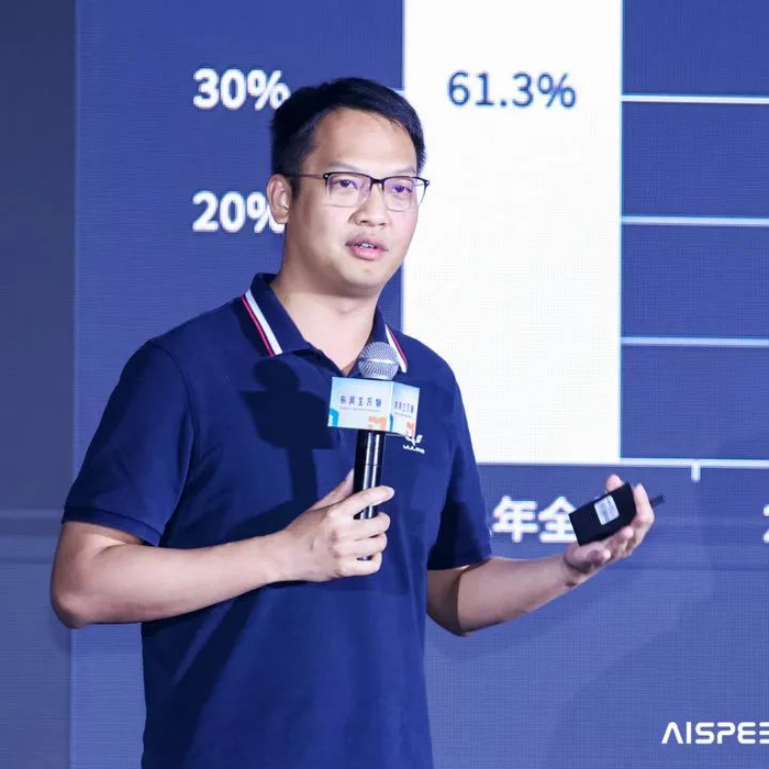 在产业应用介绍环节,俞凯隆重介绍了思必驰自研的会议办公类软硬件产品,现场由产品总监王艳龙做了详细介绍。其中,软件产品“麦耳会记”,在大模型技术加持下,已实现全面升级,新增AI摘要、A待办、文字润色、一键成稿等功能,为用户带来更智慧的办公体验。在硬件方面,王艳龙重点介绍了针对大型、中型、小型、微型的不同产品矩阵,其中,AI转写麦克风音箱M6,在同类产品中首次应用AI定向拾音、AI双向降噪功能,可以一键开启AI转写;AI追踪双目语音摄像头C60,具有多种AI追踪模式,可AI语音操控,满足不同会议场景需求。