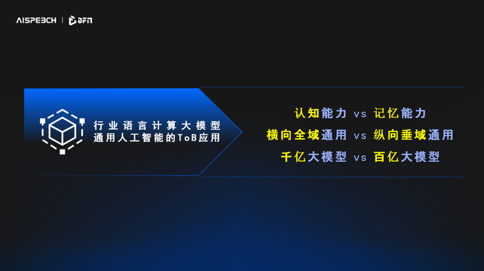 实践证明,当前人工智能产业应用的主要矛盾依旧为技术厂商的通用型技术与B端企业高度灵活的个性化需求之间的矛盾。就目前而言,通用语言大模型在行业应用中往往会面临着私域知识难包含、不准确,判别式任务精度及时效性不足,数据安全和计算可信问题,以及成本高、速度慢等问题。很难有通用的语言大模型能够把这些问题都解决掉。