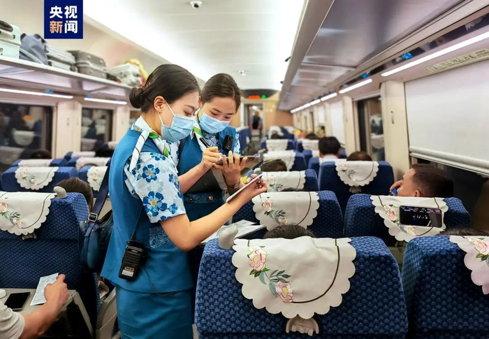 “列车上备有足够的出入境卡,便于旅客在填错时能够及时更换,乘务人员也会指导填写,对于老年旅客或者使用手机不太顺畅的旅客,我们会帮着完成出入境申报,让他们的出行体验更加便捷、温馨。”中老铁路国际旅客列车乘务指导兼列车长代蕊说。