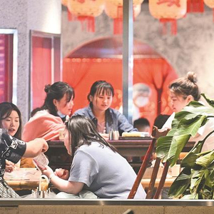 成都餐饮市场活力十足,图为众多食客在火锅店品尝美味食物 本报资料图片