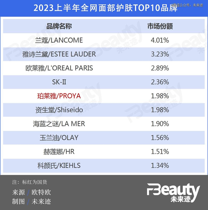 但国货在面护领域的表现不如在彩妆和美容仪领域那么精彩。