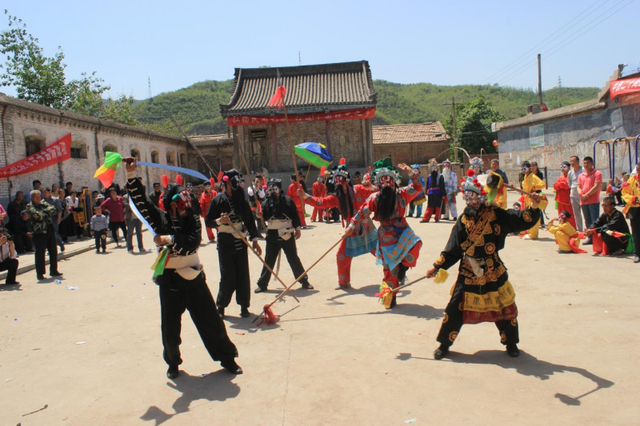 在井陉县有个武术村——桃林坪村里几乎人人会武术、个个有功夫数百年来村子里流传着一种特有的花脸社火上至耄耋老人、下至学龄前儿童都会来上一段尤其是春节期间每当鼓点响起他们都会放下碗筷脸上画上不同的脸谱拿起刀枪棍棒跟着社火队伍一起跑阵好不热闹