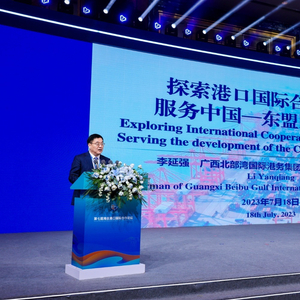 在第七届海丝港口国际合作论坛上,广西北部湾国际港务集团有限公司董事长李延强介绍,近年来北部湾港集团围绕国家战略找准定位,积极探索港口国际合作模式,以航线联通促进港口合作,不断密切北部湾港与东盟港口的联系,全力服务中国—东盟区域发展。