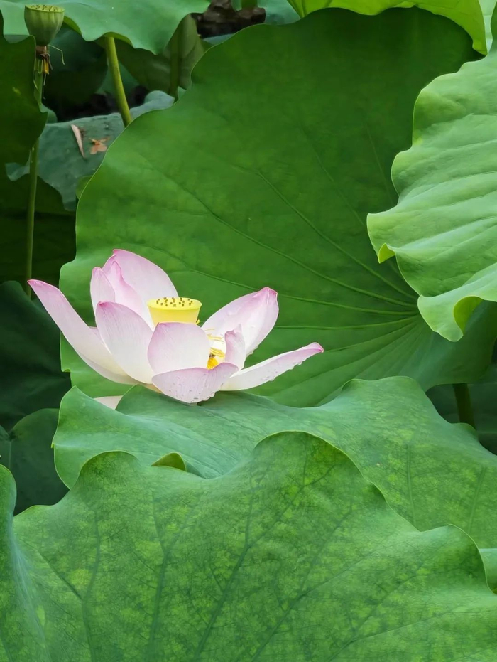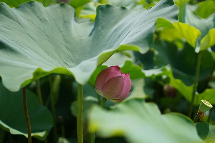 一入园,目之所及皆是荷花,碧波之上,有的含苞待放,有的绽蕾盛开,有的早已结成莲蓬。姿态各异,美在当“夏”,不觉让人心生怜爱。