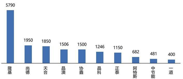 据不完全统计,2023年1~6月光伏组件中标规模(兆瓦)前十企业
