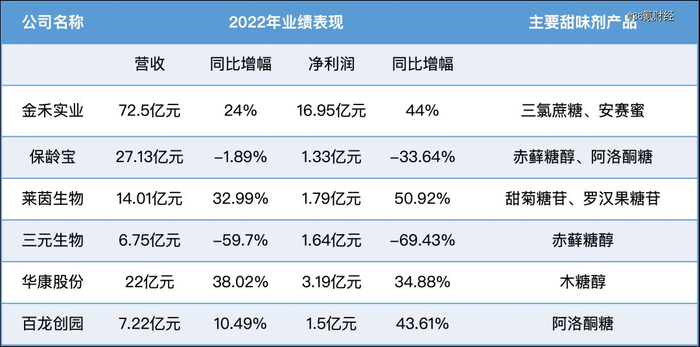 财报显示,2022年,三元生物赤藓糖醇业单项收入同比减少63.3%至5.7亿元,产品毛利率由41.56%跌至10.5%。保龄宝糖醇类产品收入同比减少46.8%至3.6亿元,毛利率也降至14.9%。