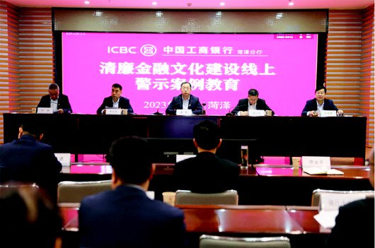 工商银行菏泽分行充分发挥“‘菏’您同行‘泽’力奋进”新时代菏泽工行精神,唱响时代主旋律,凝聚思想共识,将新时代菏泽工行精神中蕴含的不畏艰难、勇攀高峰的廉洁元素,有机融入廉政建设,通过组织开展深化金融反腐、正风反腐就在身边、清廉金融文化线上案例教育、《失守的青春》等警示教育,深入宣传廉洁文化精神内涵在新时代的教育意义,启迪党员干部从新时代菏泽工行精神中汲取精神力量,厚植清正至上、行稳致远的文化土壤,有力推进“菏风泽韵·清廉工行”廉洁文化品牌建设,让廉洁成为一种潮流、一种风习、一种精神追求,营造了风清气正的政治生态。