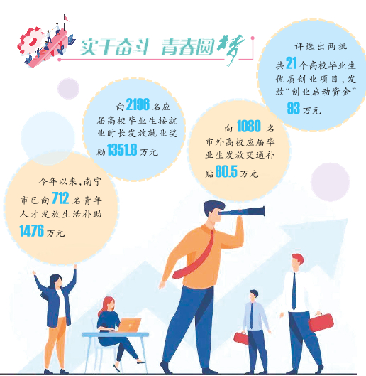 近年来,南宁市积极推进高校毕业生等各类人才来邕留邕就业创业工作,持续推进建设中国-东盟人才城,通过城市产业引才、政策措施纳才、服务创新留才等真招实招,着力打造中国面向东盟门户城市人才“蓄水池”。
