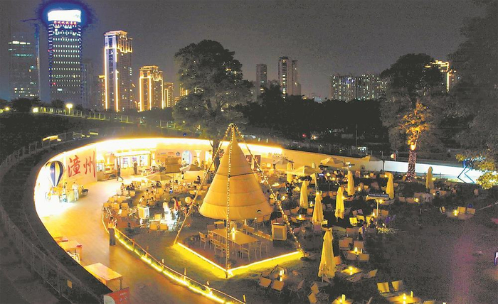 “按照‘统一规划、市场运作、资源共享、优势互补’原则,对碧湖周边的现有点状商圈,提出环碧湖核心商圈概念,如万达广场打造‘星光市集’‘推车排档美食夜市’等夜经济项目……”龙文区商务局局长林建海说,下一步,还将通过举办丰富多彩的夜间文娱活动,进一步点亮市民“夜生活”,打造集“夜购、夜食、夜玩、夜娱、夜游、夜宿”为一体的夜间经济聚集区。