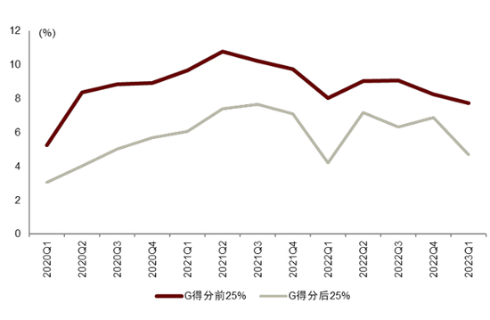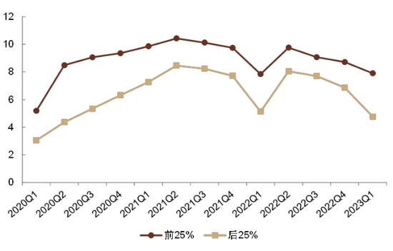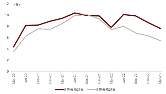 图表11:央国企ESG得分前后25%分组ROE(%)对比