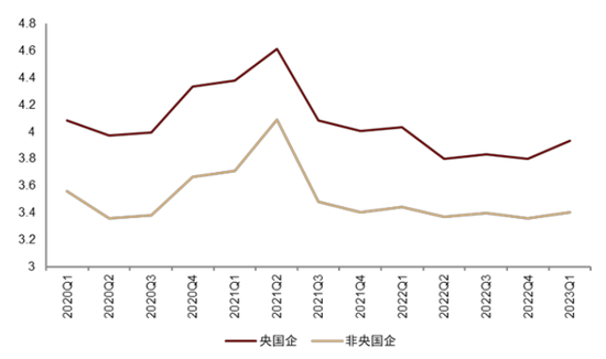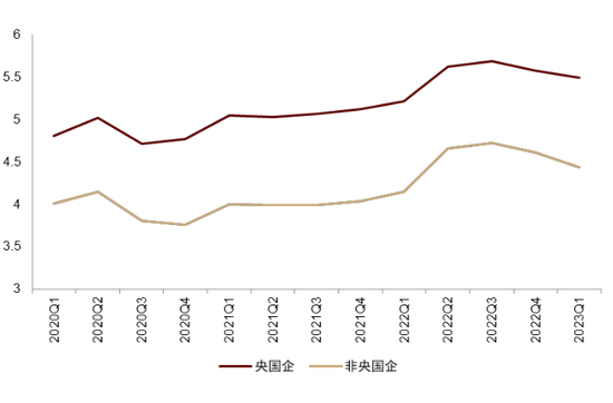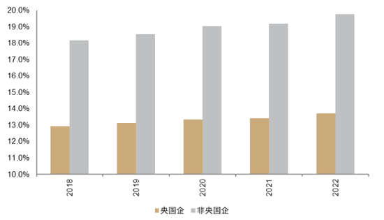 目前来看,央国企平均的研发人员占比、研发费用率与非央国企相比较低,但自三年国企改革行动提出之后,整体出现缓慢上升的趋势。在央国企高质量发展的背景下,存在较大的提升空间。研发投入强度作为央国企经营考核指标之一,随着国企改革的进一步深化,发展创新研发将有效推动央国企估值提升。