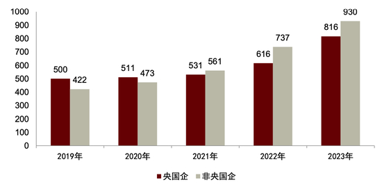 根据我们的分析,中证800与中证1000的成分股中的央国企相较非央国企的劳动关系管理有着明显优势。而对于股权激励规模和数量,央国企仍存在明显差距,但已经初步呈现增长趋势,是未来央国企提升自身估值价值的潜在提升点之一。