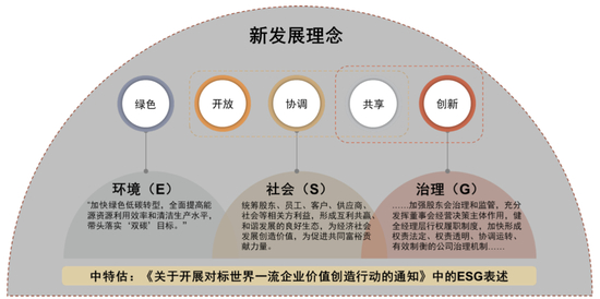 图表3:ESG与新发展理念、中国特色估值体系的相关表述与关联