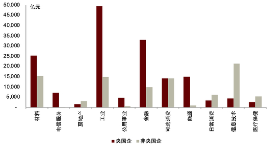 ► 央国企的内外部优势未反映到估值:从估值层面来看,多数国央企上市公司处于同行业较低估值的水平,多数行业央国企相比非央国企的折价幅度较大。其中,央国企占比较大的汽车,建筑,钢铁,石油石化,交通运输等传统行业估值折价较为明显。