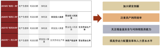 ►2023年1月,新一轮国企改革开启,国资委于召开中央企业负责人会议,会议进一步优化中央企业经营指标体系为“一利五率”,目标为“一增、一稳、四提升” ,并对“两利四率”的指标进行了相应调整: