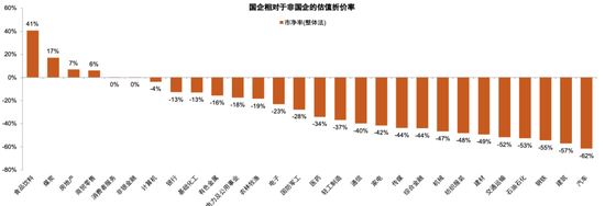 图表9:多数行业的央国企相比非央国企的折价幅度较大
